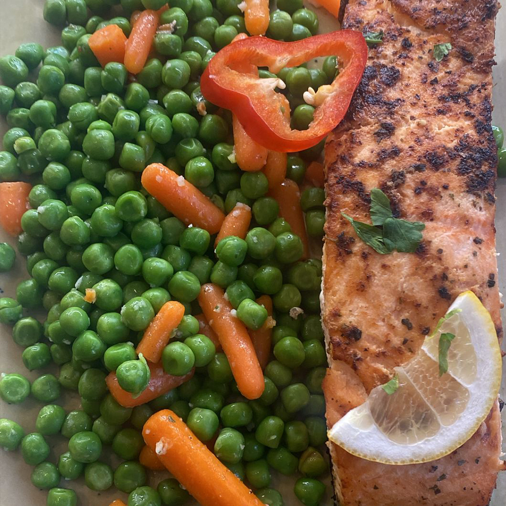Galerie foto din meniu Mazăre cu Somon la cuptor Salata mexicană Cartofi la cuptor cu rulandă de carne Paste Arrabiata